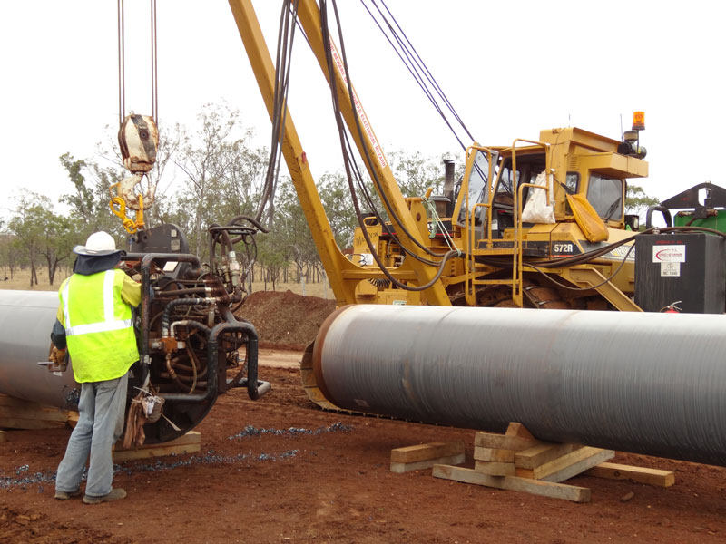 As you can imagine, the climate during the winter months is harsh and very demanding. The 72H pipelayer received a custom fit cab with a heater available just in time! The 72H pipelayers were used to handle the welding shacks that contain the automatic welders (shack packers). PL61 pipelayers worked the end prep or beveling machines and the PL87 pipelayers handled the bending, lowering, and heavy lifting phases of the job.